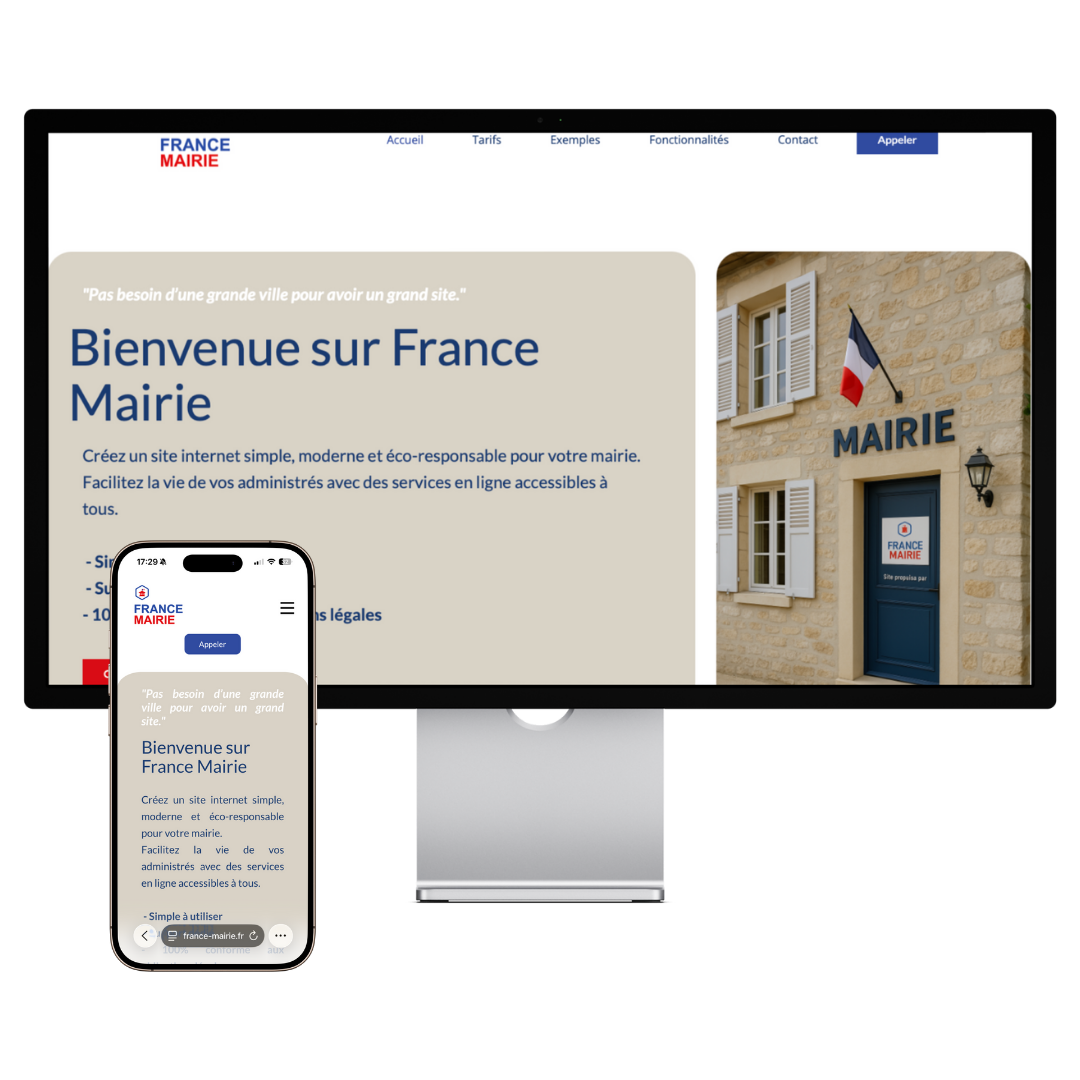 - Jusqu’à 10 pages sur-mesure (Accueil, Histoire, Vie communale, Vie pratique, Scolaire, Contact, Intercommunalité, Collecte, PLU, etc.)